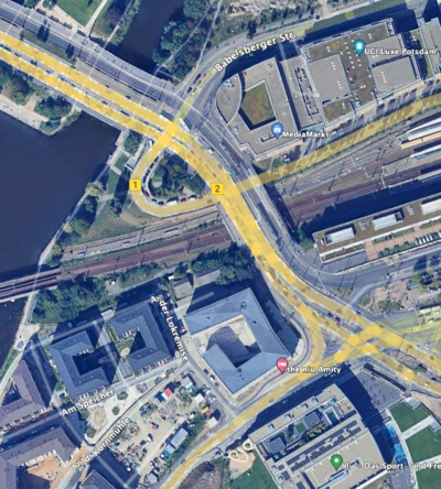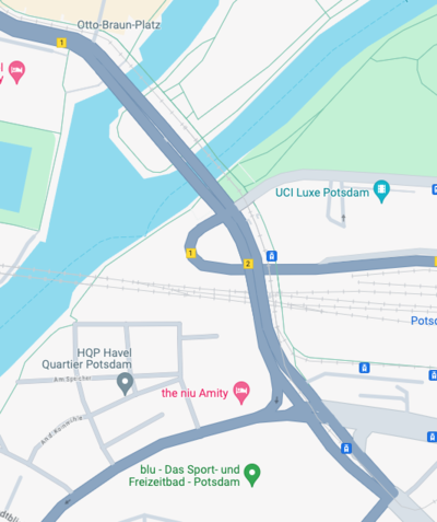 This is a reminder to stay sane if I quickly want to know the name of a street by checking the maps of one of the online map providers. In such a situation, I should use Open Street Map! Neither Google Earth nor Google Maps consider it a valuable detail to display the street names, as the first two images below show (Google Maps and Earth). The last one is from Open Street Map.